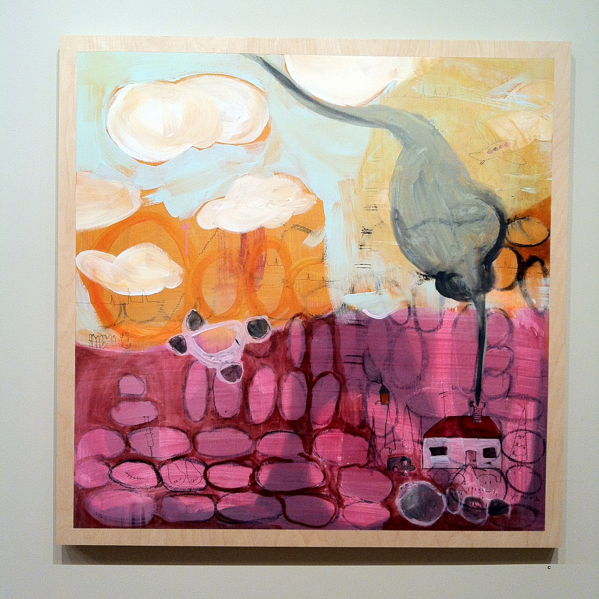 It’s funny. I did not realize what my work was really about until I was talking to my dad’s friend, Dr. Lewis. He was asking me what all the little drawings were about and, forced to explain my madness, I said, as if I had known all along, “Well, the drawings are all about home. They are about memories, good ones and bad, and about the things that take up earthly space, but if you look closely, you will find things that lead your eye up to the heavens… arrows and ladders and airplanes … things that lift us up (i.e “make us capable of taking off and landing”). I explained to Dr. Lewis that the work is a form of prayer and in that prayer I am hopeful that there is a heaven.